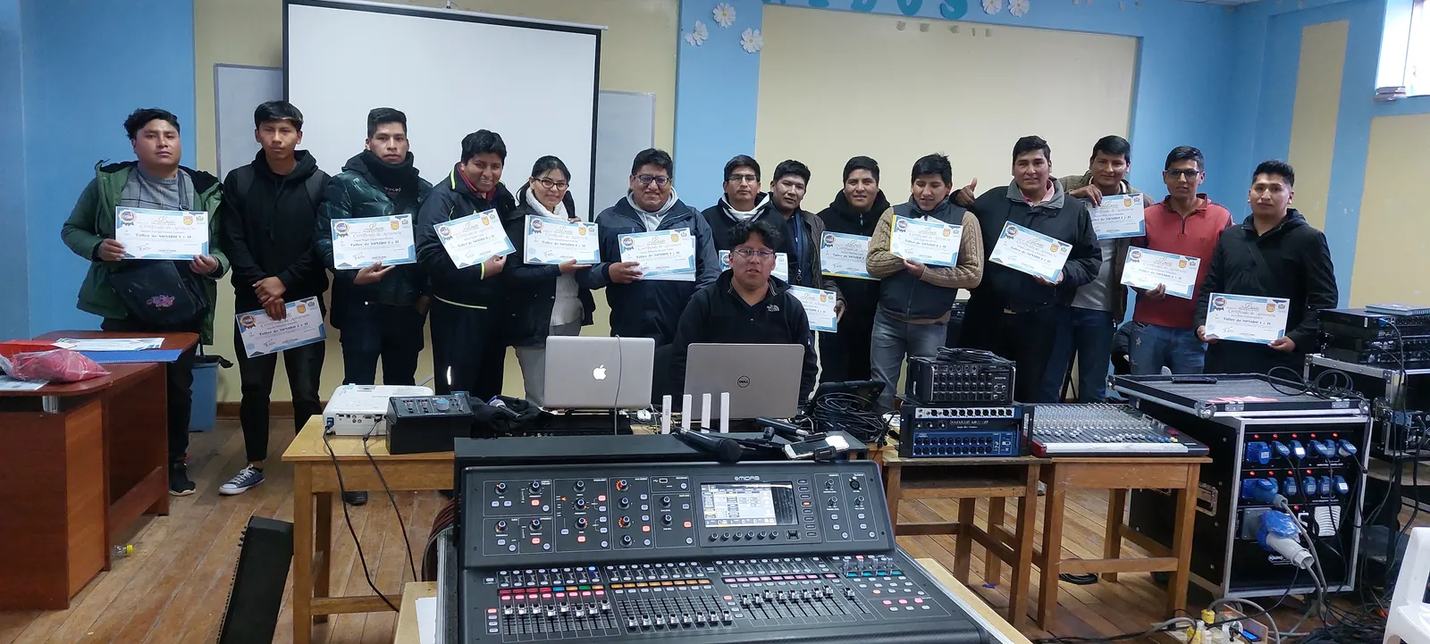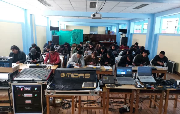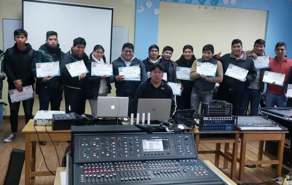Por la gran demanda de alumnos que buscaban cursar un clases sobre la temática de especialidad de sonido en vivo, se abre el primer taller de “Curso de Sonido en vivo”, el cual tuvo gran aceptación en el año 2012 en la ciudad de La Paz.